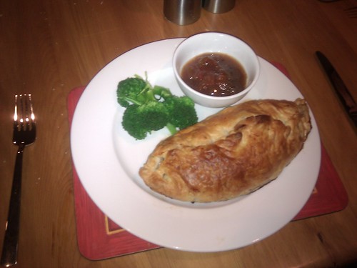 I thought these were huge, but when I mentioned it to said friend yesterday, she said this is pretty normal. I did modify the recipe ever so slightly - I used flaky pastry instead of savoury short (and would do so again) and I used carrots instead of swede, but only because that's what I had in the house. I'll list the recipe below as I intend to do it for my next batch. I've served it above with some lightly steamed broccoli & a small bowl of my Dad's absolutely delicious tomato relish.