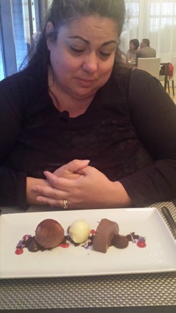 By dessert I couldn't fit much in so decided to have the "Petit Fours" which were four different chocolates and delightful. Jane had the "Dark chocolate crema catalana, milk chocolate mousse, jaffa curd, crème fraîche sorbet" and the crema catalana and jaffa curd were particularly good.