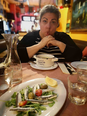 After getting a little wet we had a coffee and Italian hot chocolate, I went for a small walk and then Jane ordered some anchovies to accompany lunch.