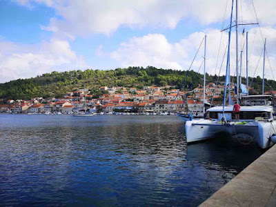With the weather forecast for thunder storms we went to Vela Luka for coffee and the Vela Spila cave where ceramic fragments thought to be around 17,500 years old have been found.