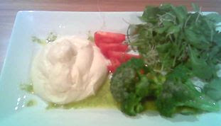 goats cheese, pickled garlic and roquette leaves.lovely smokey flavour