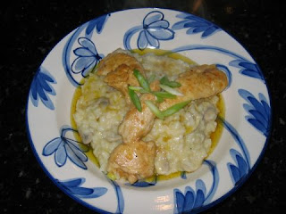 This meal was the night after the Cauliflour swirl soup, and I used the remainder of the cauliflour part of the soup as my stock base for my risotto (a little unorthodox, but waste not want not). The chicken I did in a style that we usually use to cook veal - coating it in flour, frying (which I rarely do to be honest) in butter and olive oil, then pouring over lemon juice and a dash of vege stock to make the most delicious sauce. And it worked so well with the risotto, I was quite delighted! (The lovely yellow around the edge is mostly lemon juice, not butter!)