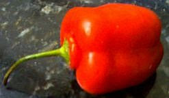 they're now not too bad - so I picked up a couple of mangos, some coriander (yay!) and chillis - they didn't have any that looked hot enough, so I upgraded to one of these (and no I didn't use a whole one! in fact I only used about 10% of it, and yes, it certainly threw quite a punch!).