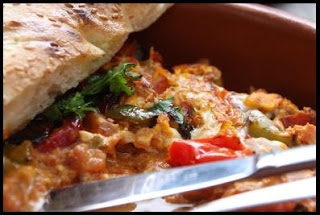 Yesterday, I had another house specialty - the Piperada - eggs with capsicum, tomato, coriander and served in a terracotta dish, the name for which I cannot remember. Came with a serve of Turkish bread - and was very filling and very very delicious. Highly recommended if you're looking for a healthy, low fat, filling breakfast too.