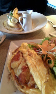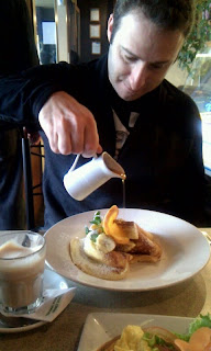 Simon had the pancakes with lashings of Maple Syrup and I went for an Omelette with fresh garden salad. I'm always a little dubious about ordering salads as they're often the ubiquitous mesclun mix plopped on the plate and served. This however was fresh, generous and absolutely delicious. The omelette was also great, and very filling!