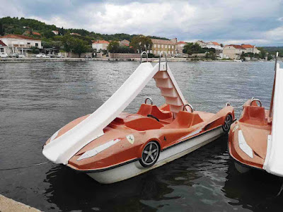 We then drove to Lumbarda to check out the beach (but it really wasn't beach weather) and Lumbarda village where we saw a Ferrari boat with a slide.