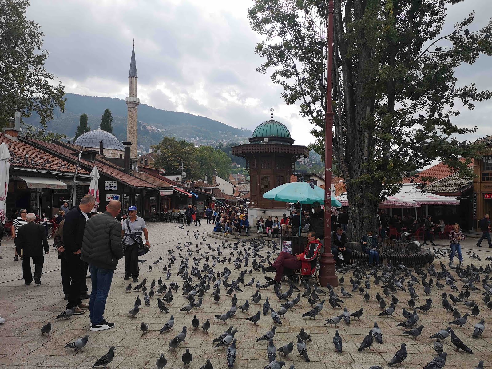 Around the corner we came across the Sebilj fountain which is an Ottoman-style wooden fountain built in 1753 and has no shortage of pigeons around it.